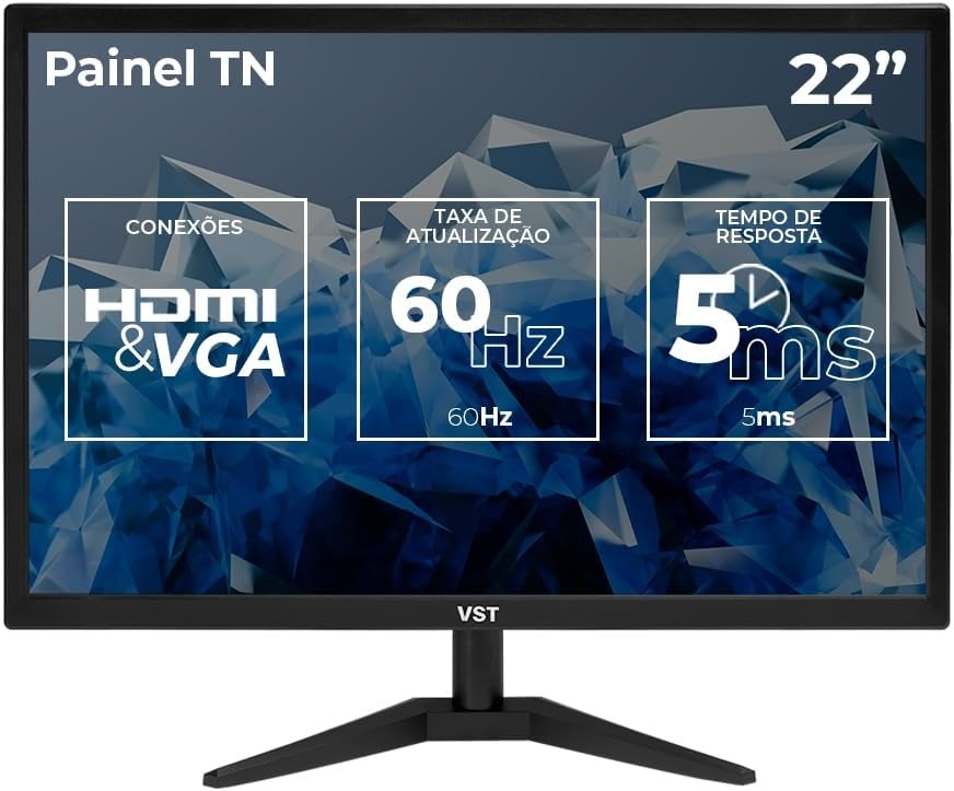 O Monitor VST VST22-BL01 é uma opção prática para uso diário, oferecendo tela Full HD, design robusto e ótima conectividade.